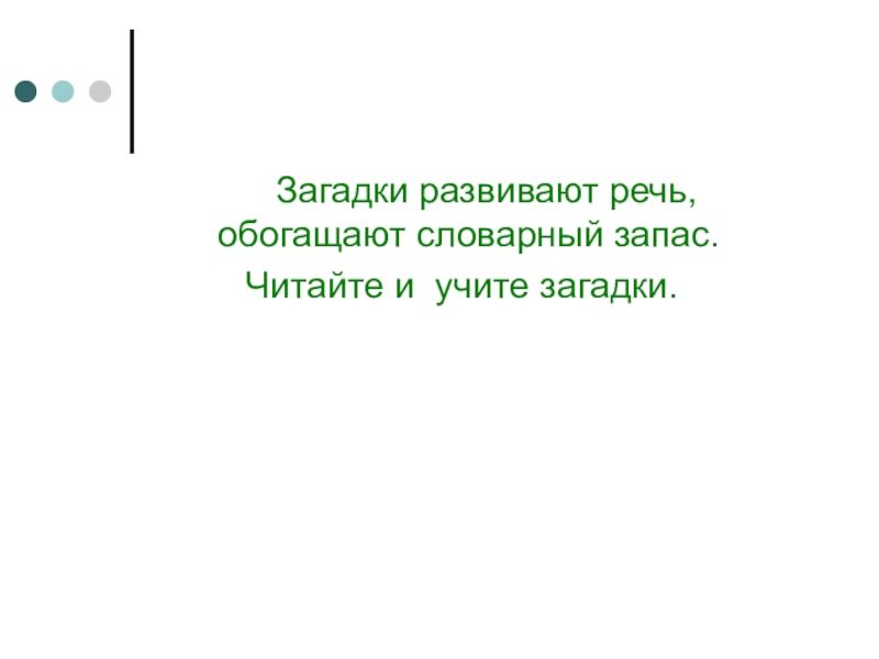 Слайд 15 Загадки развивают речь, обогащают словарный запас.