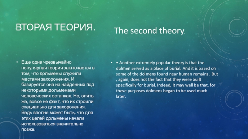 Еще одна чрезвычайно популярная теория заключается в том, что дольмены служили местами захоронения. И базируется она на найденных под некоторыми дольменами человеческих останках. Но, опять же, вовсе не факт, что их строили специально для захоронения. Ведь вполне может быть, что для этих целей дольмены начали использоваться значительно позже.