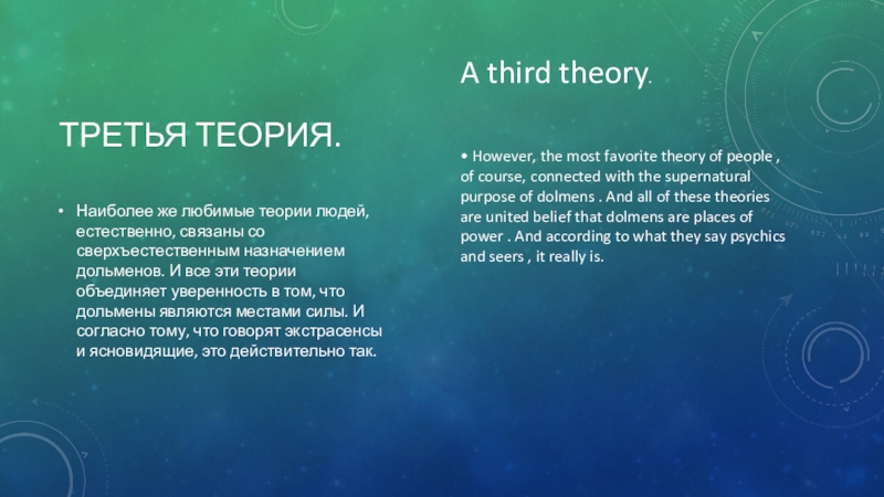 • However, the most favorite theory of people , of course, connected with the supernatural purpose of dolmens . And all of these theories are united belief that dolmens are places of power . And according to what they say psychics and seers , it really is.
