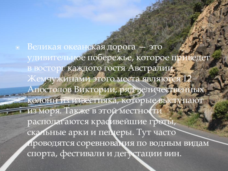 Слайд 9Великая океанская дорога — это удивительное побережье, которое приведет в восторг каждого