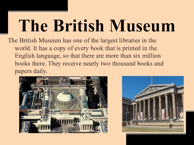 The British MuseumThe British Museum has one of the largest libraries in the world. It has a