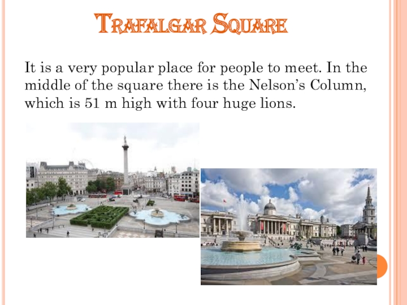 Trafalgar SquareIt is a very popular place for people to meet. In the middle of the square