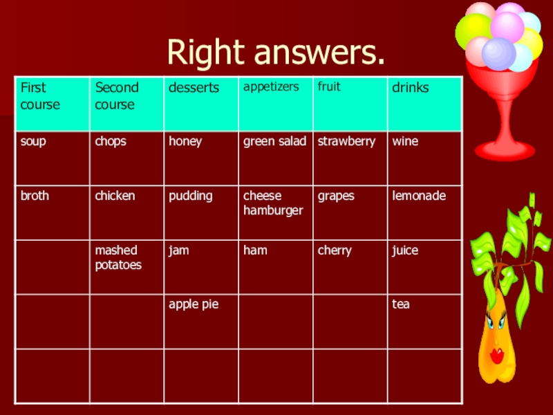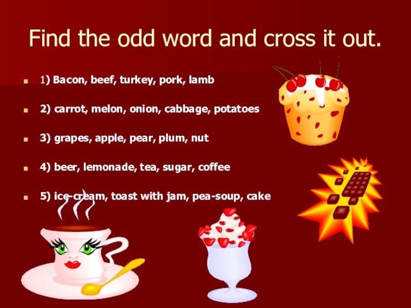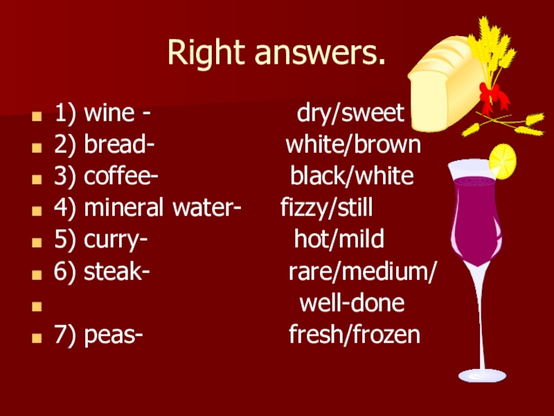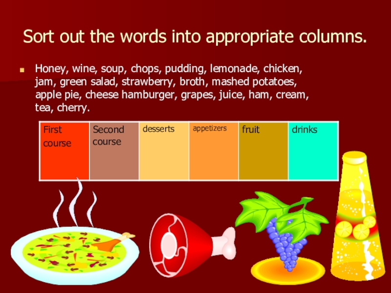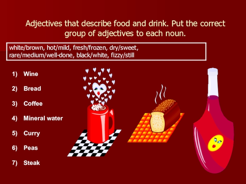 Слайд 12Adjectives that describe food and drink. Put the correct group of