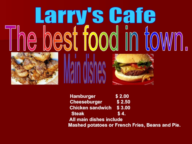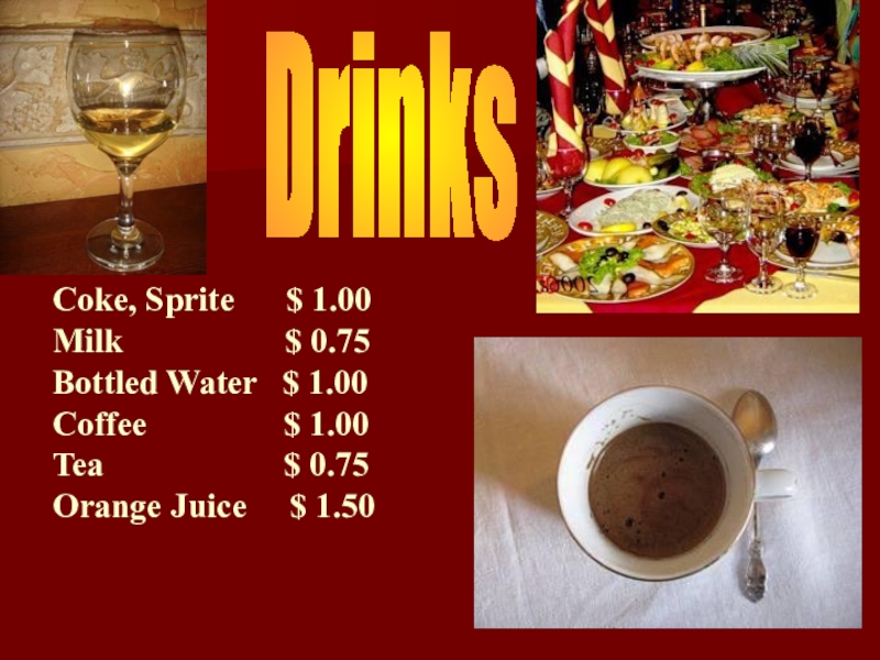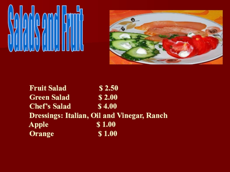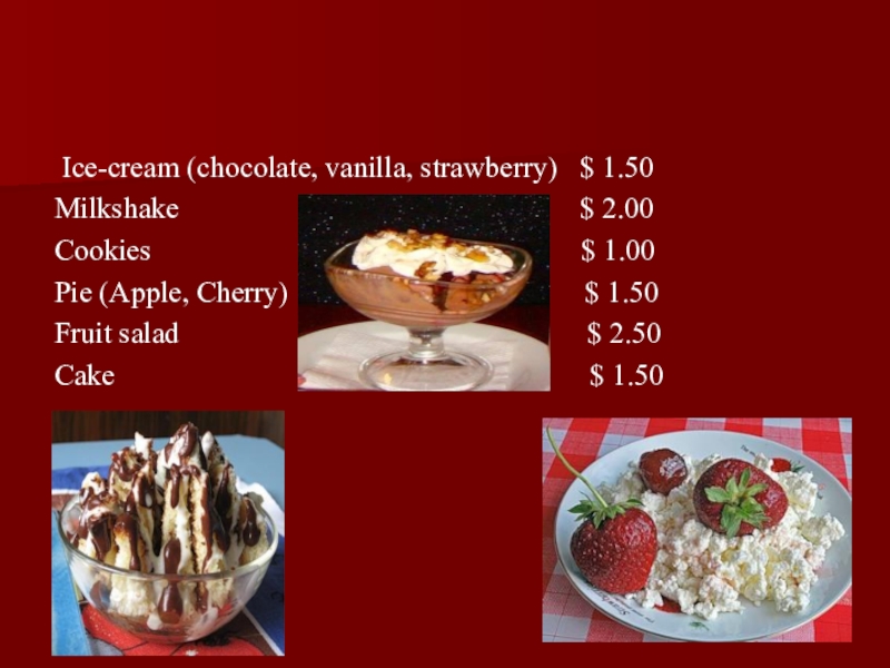 Слайд 19 Ice-cream (chocolate, vanilla, strawberry) $ 1.50