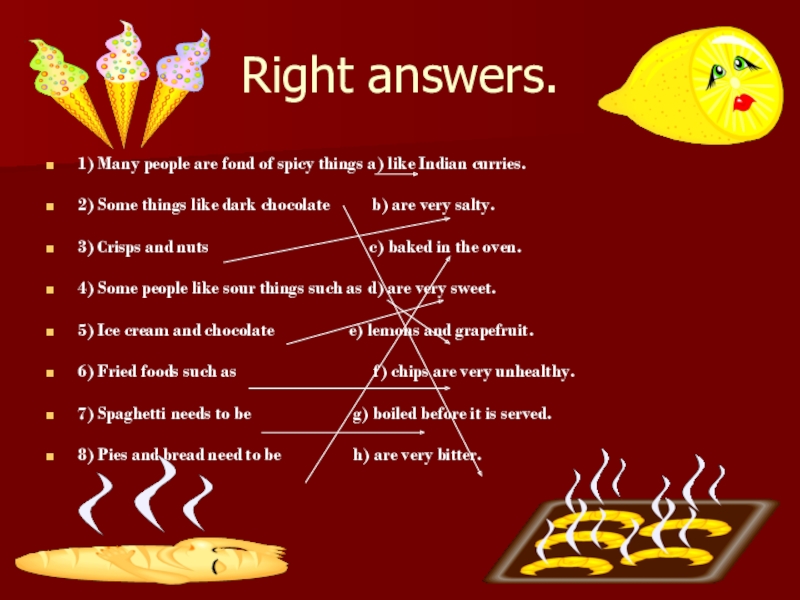 5) Ice cream and chocolate e) lemons and grapefruit.