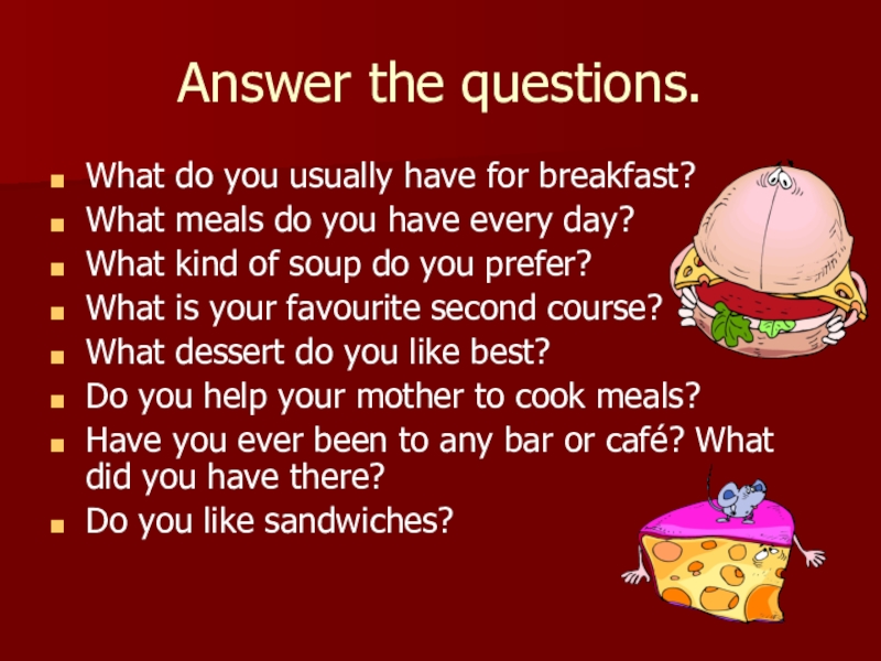 4) Don’t live to eat, but eat to live. d) После обеда поспи