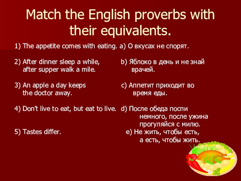 2) After dinner sleep a while, b) Яблоко в день и не знай