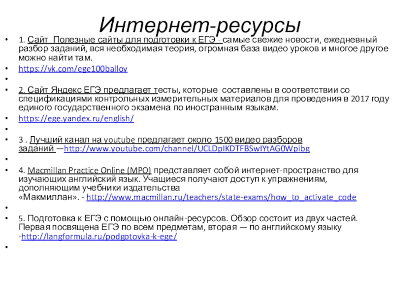 Слайд 17 Интернет-ресурсы