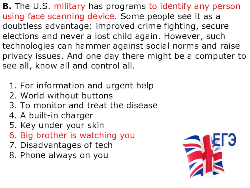 Слайд 8В. The U.S. military has programs to identify any person using face