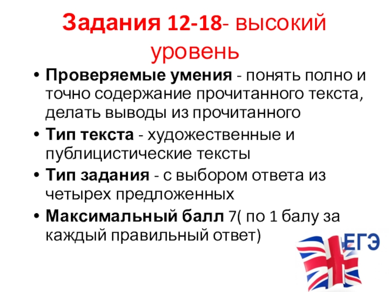 Слайд 15Задания 12-18- высокий уровень