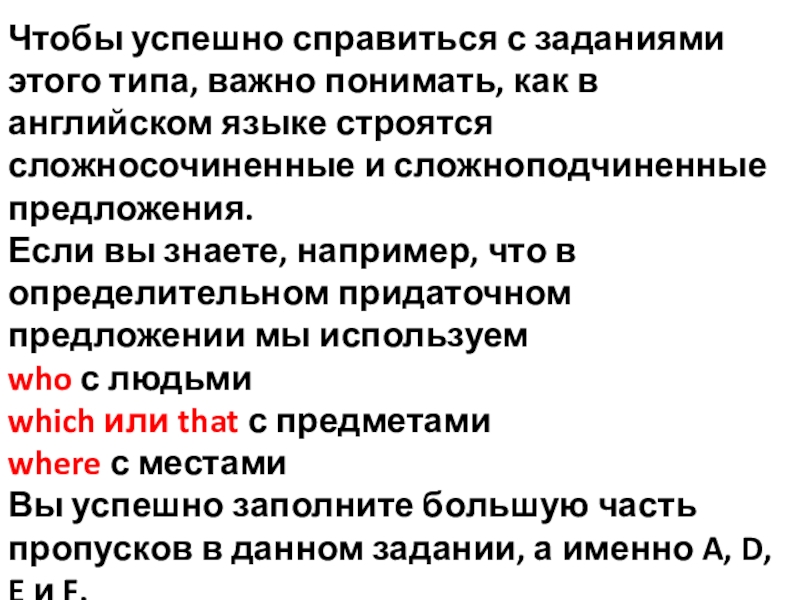Слайд 11Чтобы успешно справиться с заданиями этого типа, важно понимать, как в