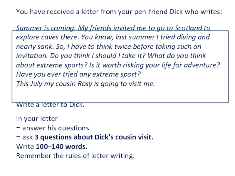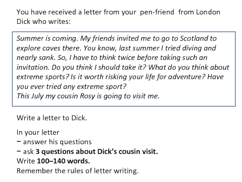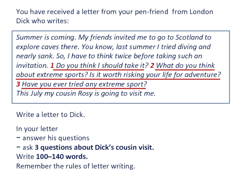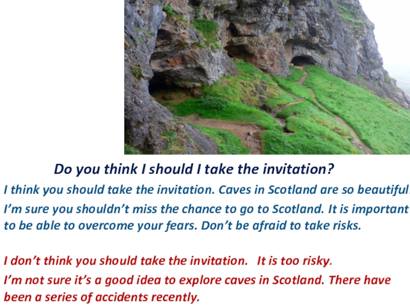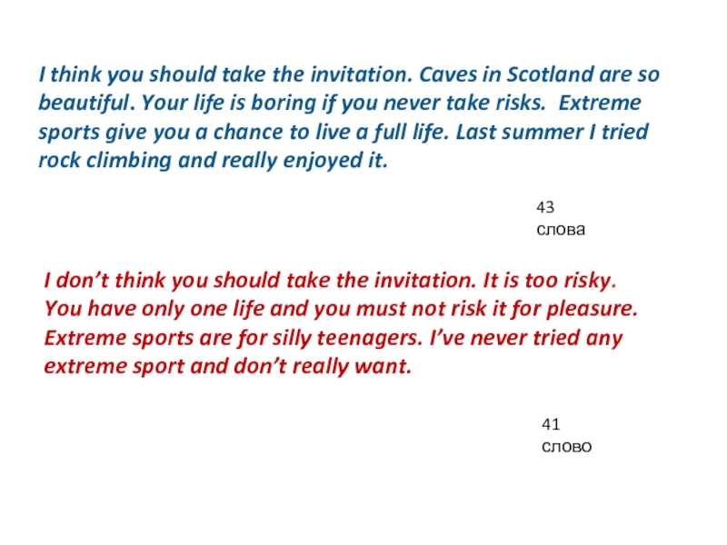 I don’t think you should take the invitation. It is too risky. You have only one life and you must not risk it for pleasure. Extreme sports are for silly teenagers. I’ve never tried any extreme sport and don’t really want.