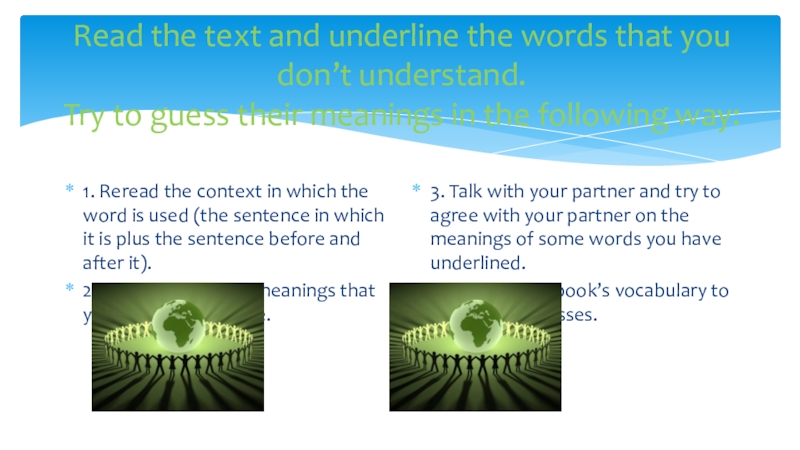 3. Talk with your partner and try to agree with your partner on the meanings of some words you have underlined.