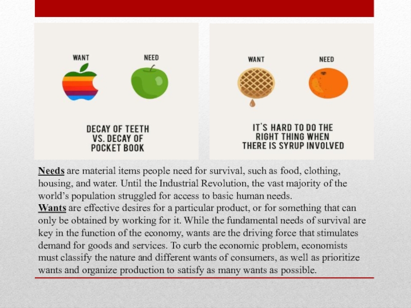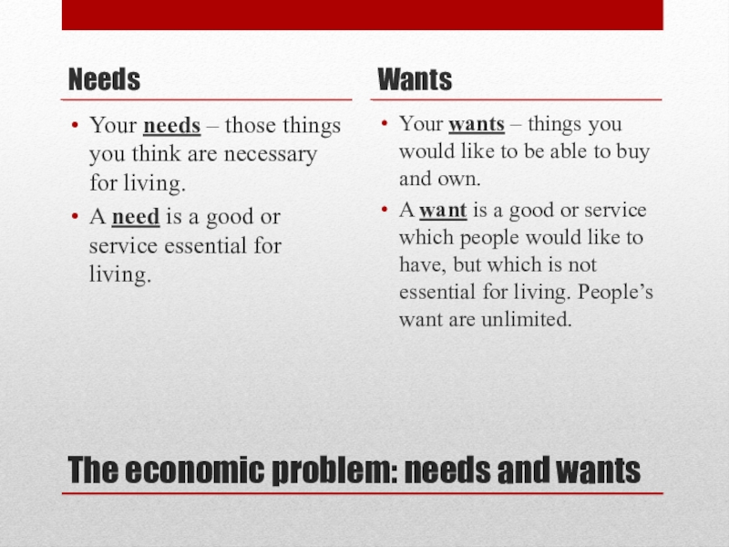 A want is a good or service which people would like to have, but which is not essential for living. People’s want are unlimited.