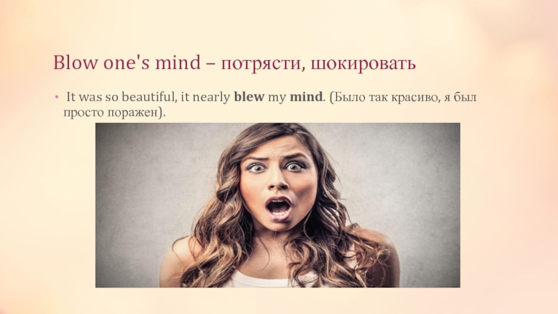 Blow one's mind – потрясти, шокировать It was so beautiful, it nearly blew my mind. (Было так красиво, я был просто поражен).