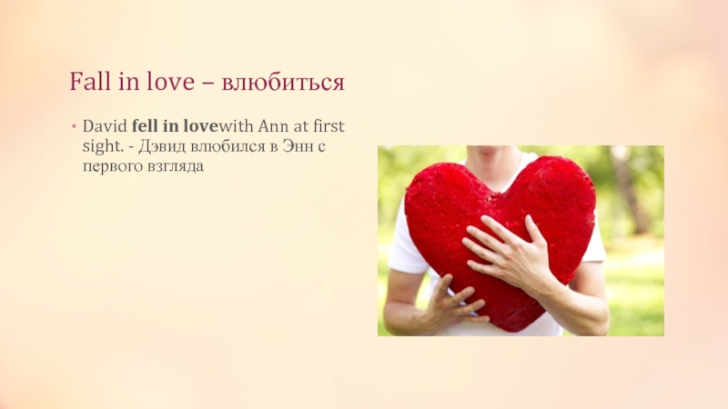 Fall in love – влюбитьсяDavid fell in lovewith Ann at first sight. - Дэвид влюбился в Энн с первого взгляда