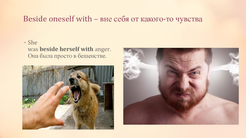 Слайд 5Beside oneself with – вне себя от какого-то чувства