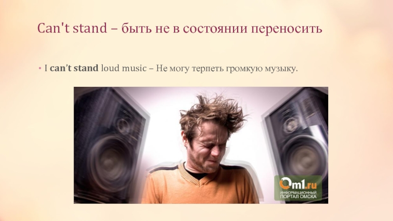 Can't stand – быть не в состоянии переносить I can’t stand loud music – Не могу терпеть громкую музыку.