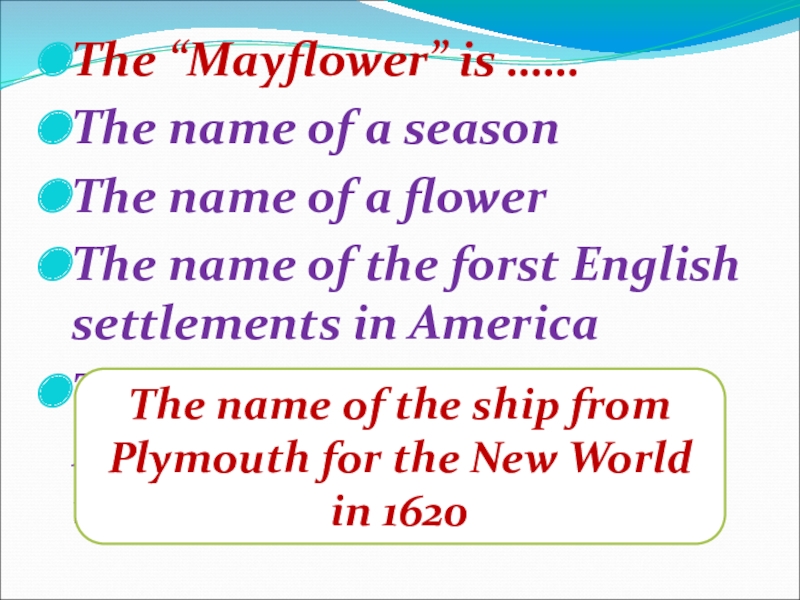 The name of the ship from Plymouth for the New World in 1620