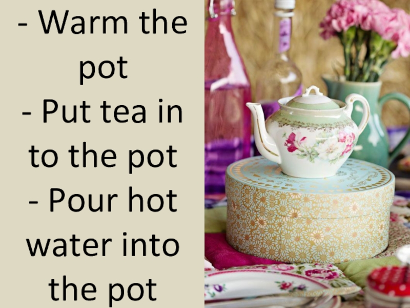 Слайд 32- Warm the pot - Put tea in to the pot - Pour