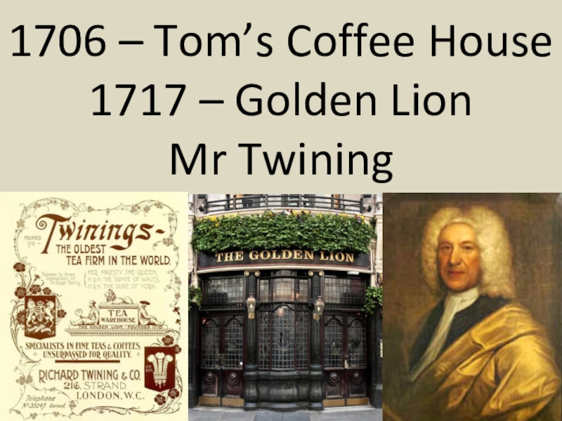 Слайд 111706 – Tom’s Coffee House 1717 – Golden Lion Mr Twining