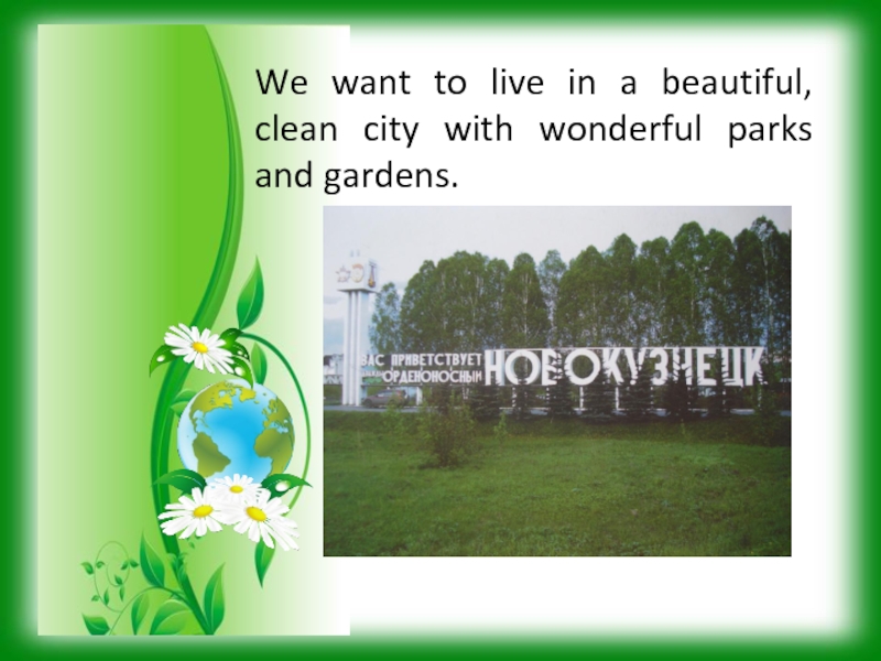 Слайд 9We want to live in a beautiful, clean city with wonderful