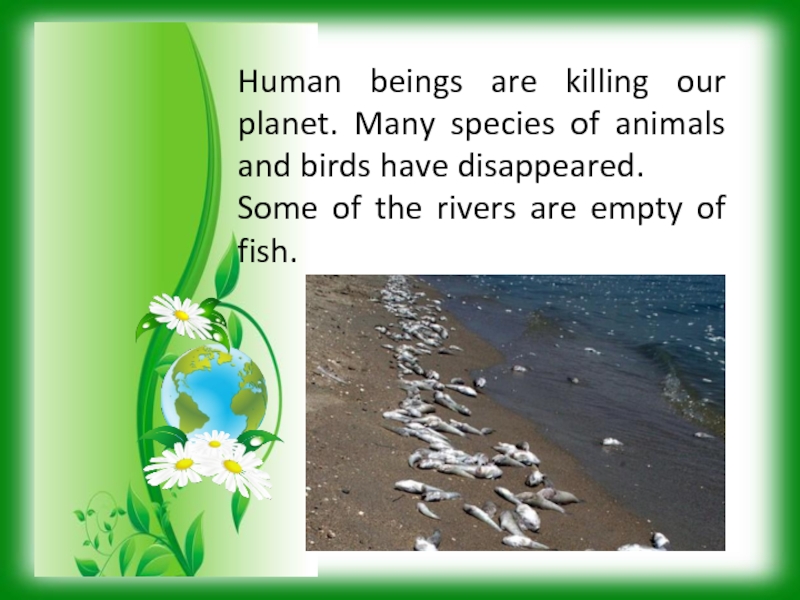 Слайд 6Human beings are killing our planet. Many species of animals and