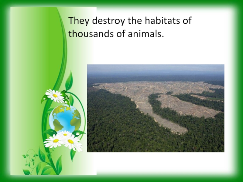 Слайд 4They destroy the habitats of thousands of animals.