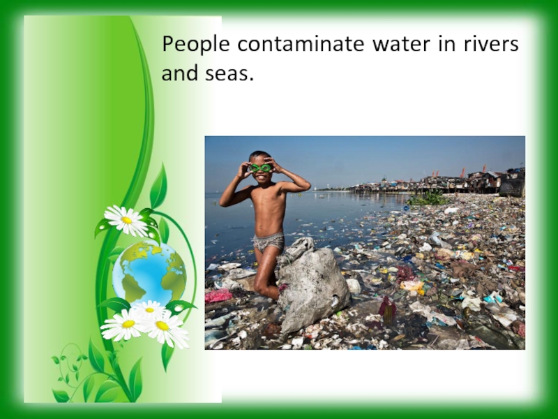 Слайд 5People contaminate water in rivers and seas.