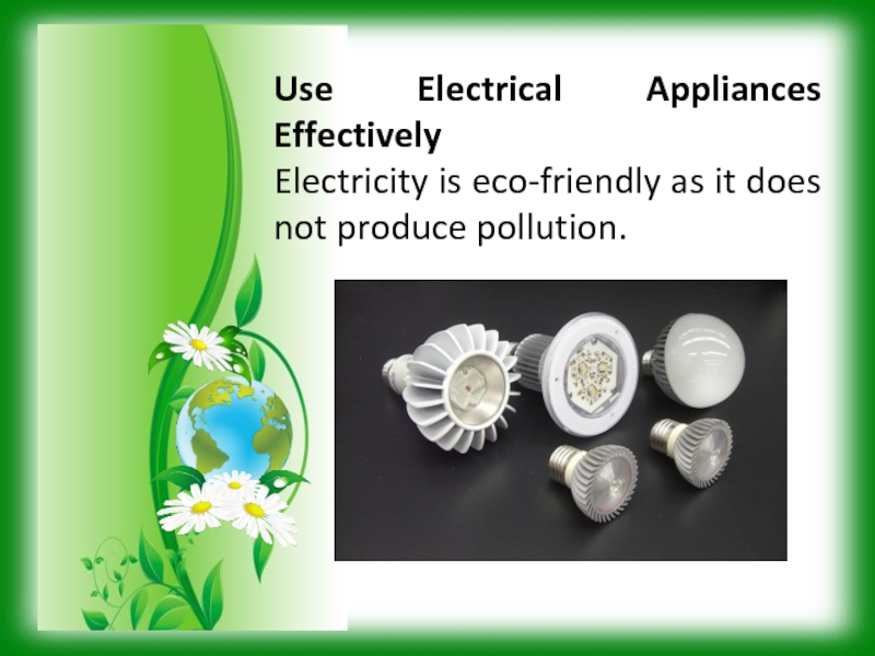 Use Electrical Appliances EffectivelyElectricity is eco-friendly as it does not produce pollution.