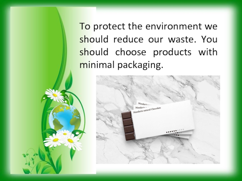 Слайд 10To protect the environment we should reduce our waste. You should