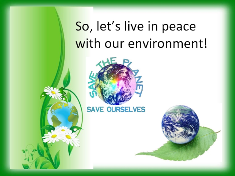 Слайд 13So, let’s live in peace with our environment!