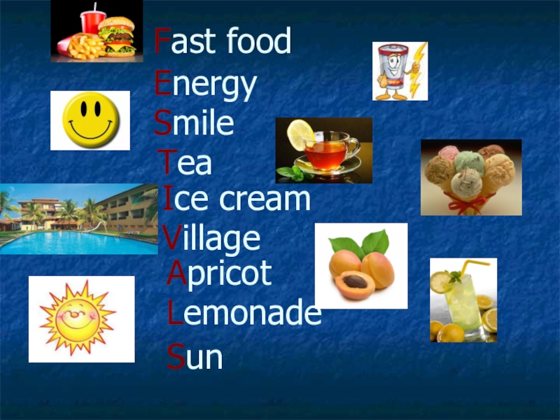Fast foodEnergySmileTeaIce creamVillageApricotLemonadeSun
