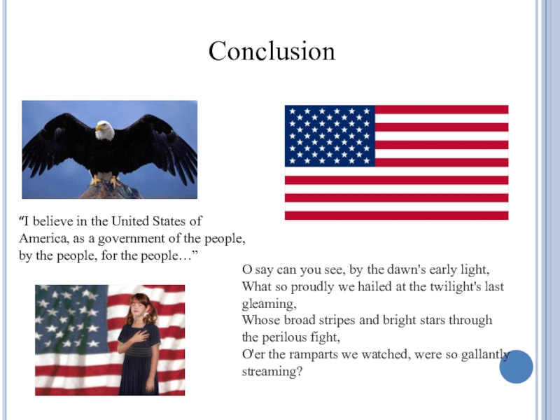 “I believe in the United States of America, as a government of the people, by the people, for the people…”