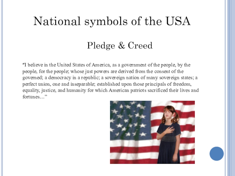 “I believe in the United States of America, as a government of the people, by the people, for the people…”