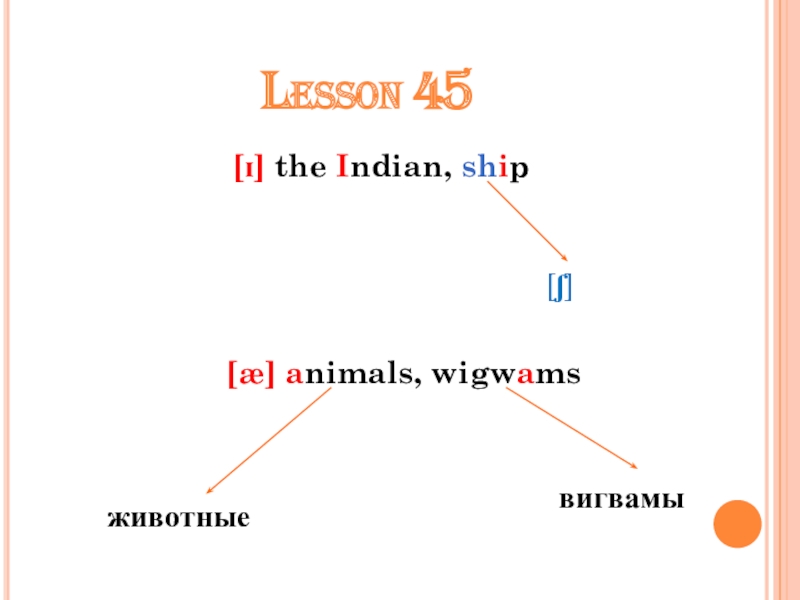Lesson 45[ɪ] the Indian, ship[ʃ][æ] animals, wigwamsживотныевигвамы