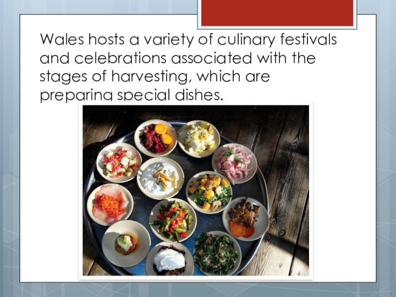 Слайд 30Wales hosts a variety of culinary festivals and celebrations associated with