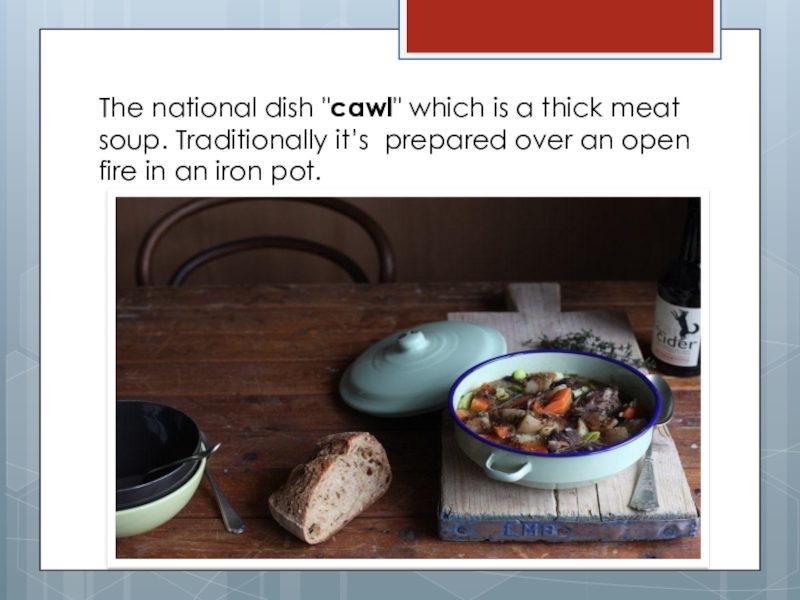 Слайд 25The national dish "cawl" which is a thick meat soup. Traditionally