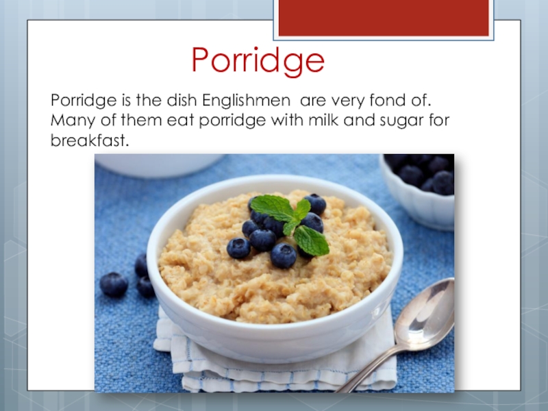 Слайд 5Porridge is the dish Englishmen are very fond of.