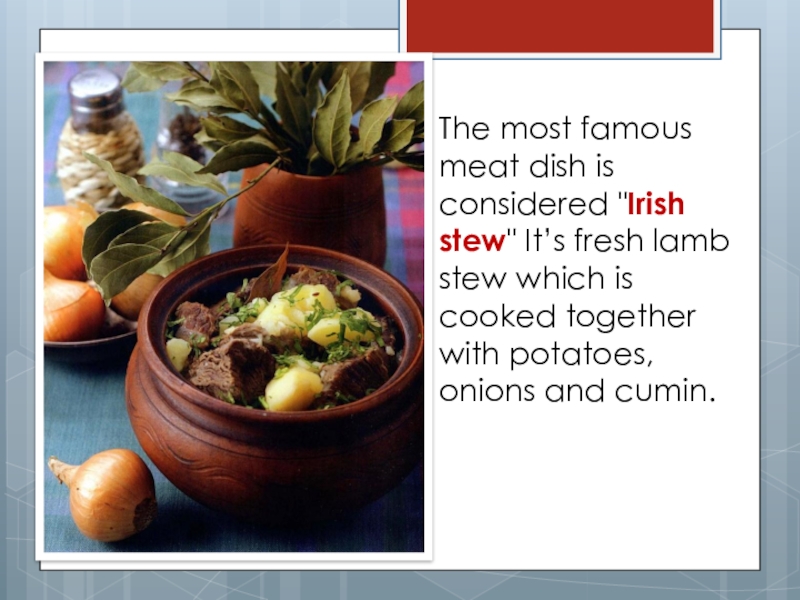 Слайд 32The most famous meat dish is considered "Irish stew" It’s fresh
