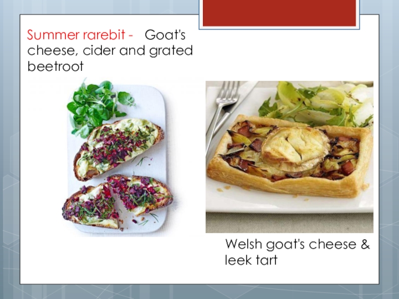 Слайд 28Summer rarebit - Goat's cheese, cider and grated beetroot