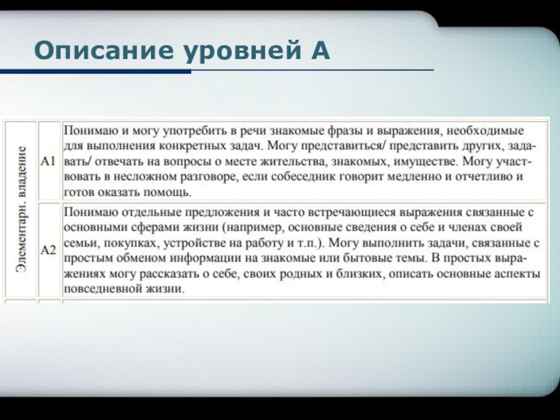 Слайд 4Описание уровней А