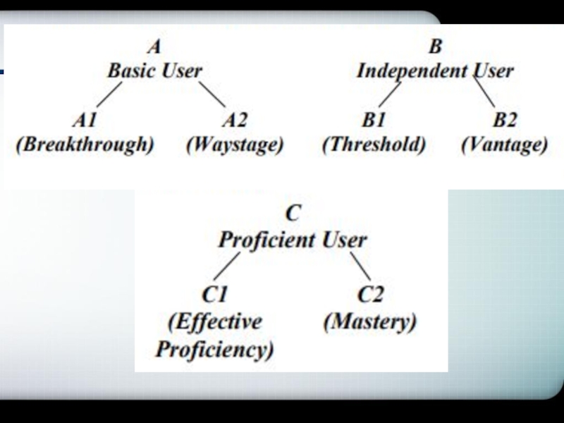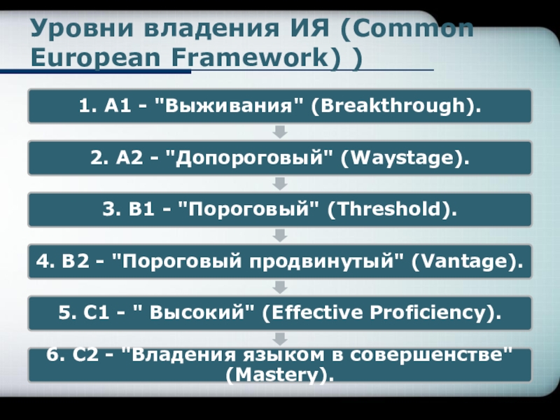 Слайд 2Уровни владения ИЯ (Common European Framework) )