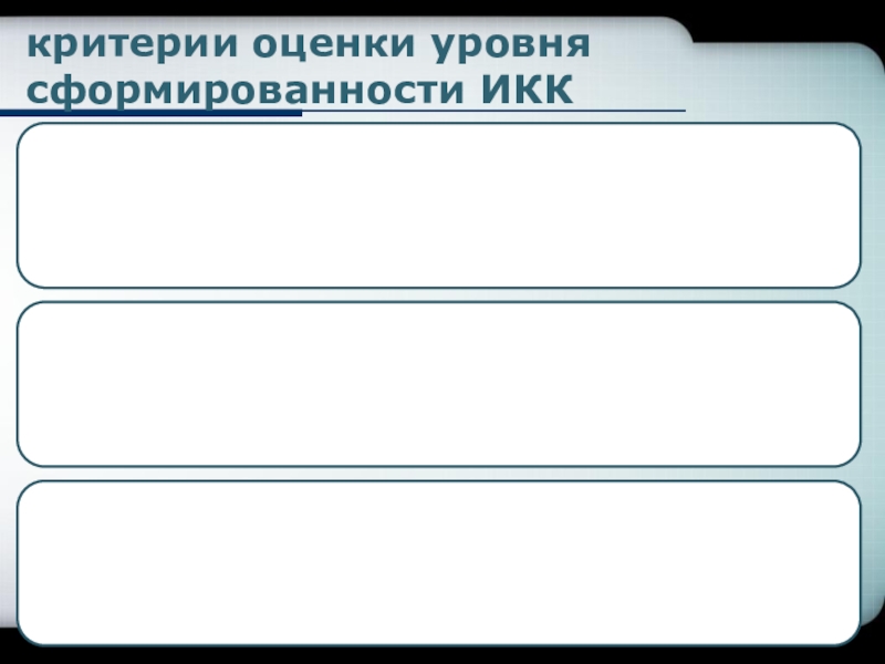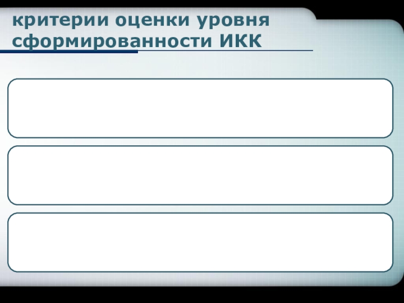Слайд 7критерии оценки уровня сформированности ИКК