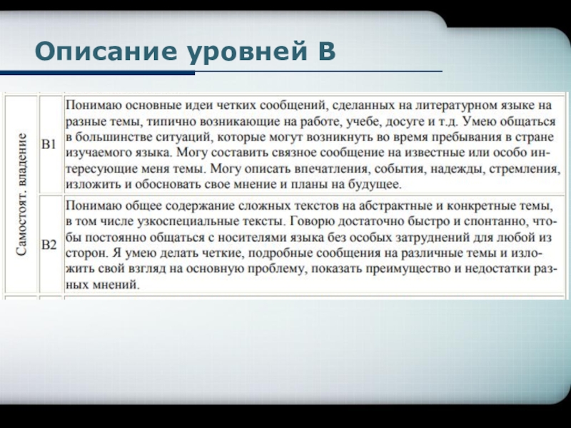 Слайд 5Описание уровней В