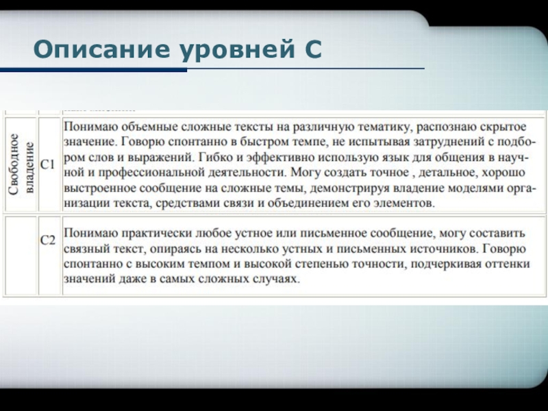 Слайд 6Описание уровней С