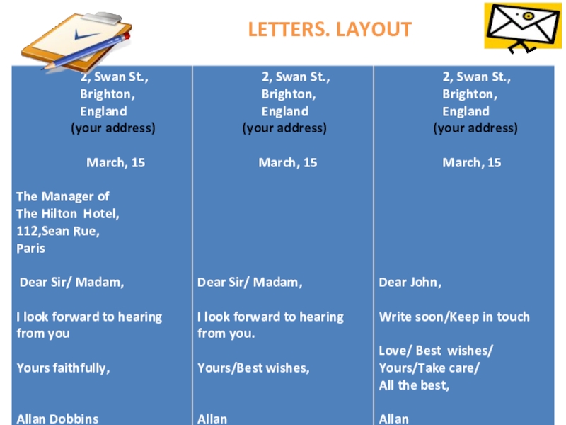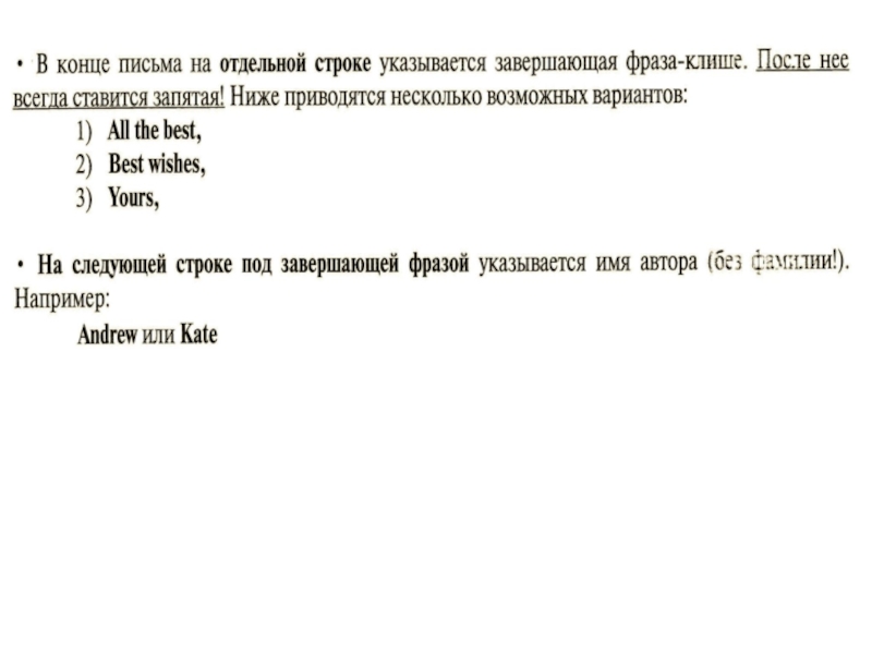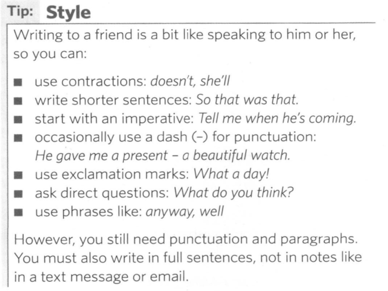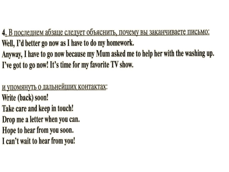 Write back soon. (Take care and keep in touch./ Can’t wait to hear from you./ Drop me a letter when you can.)