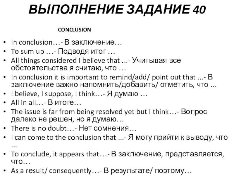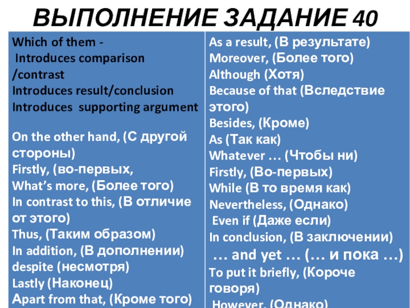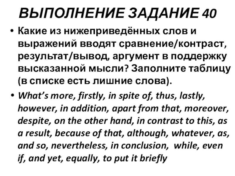 Слайд 32ВЫПОЛНЕНИЕ ЗАДАНИЕ 40