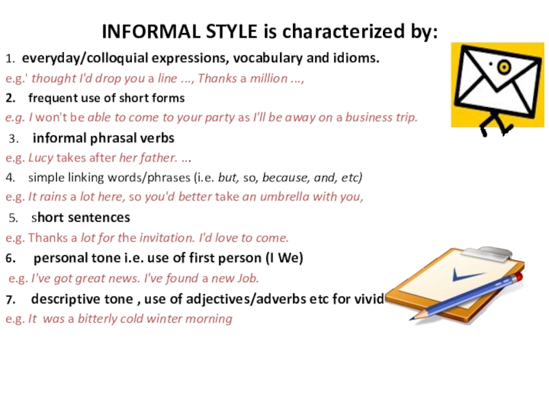 7. descriptive tone , use of adjectives/adverbs etc for vivid description