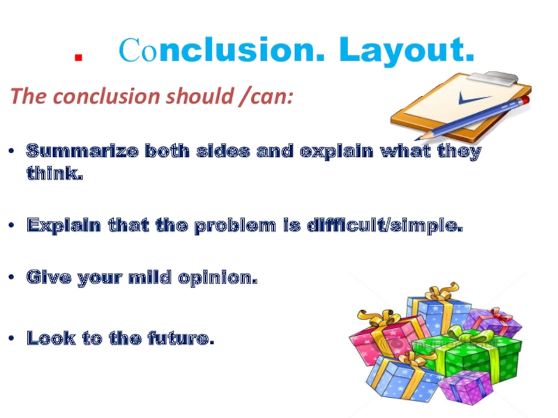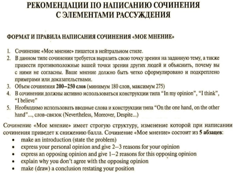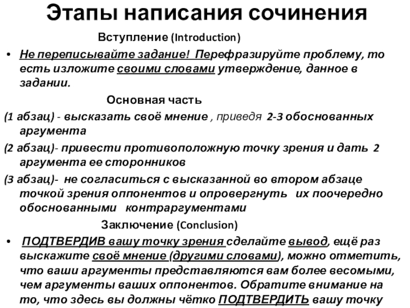 (1 абзац) - высказать своё мнение , приведя 2-3 обоснованных аргумента